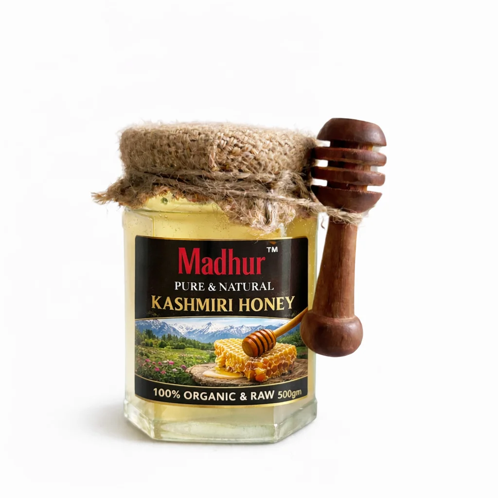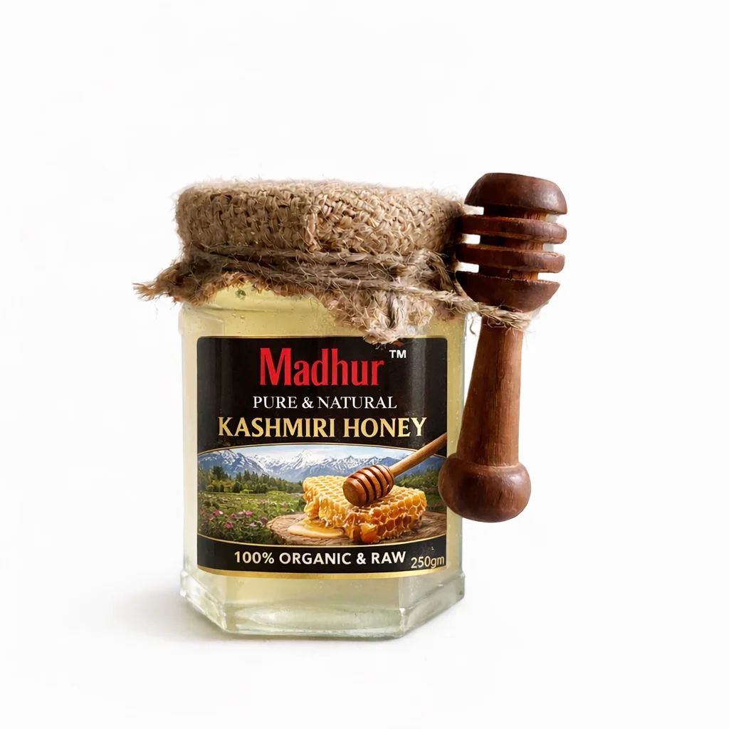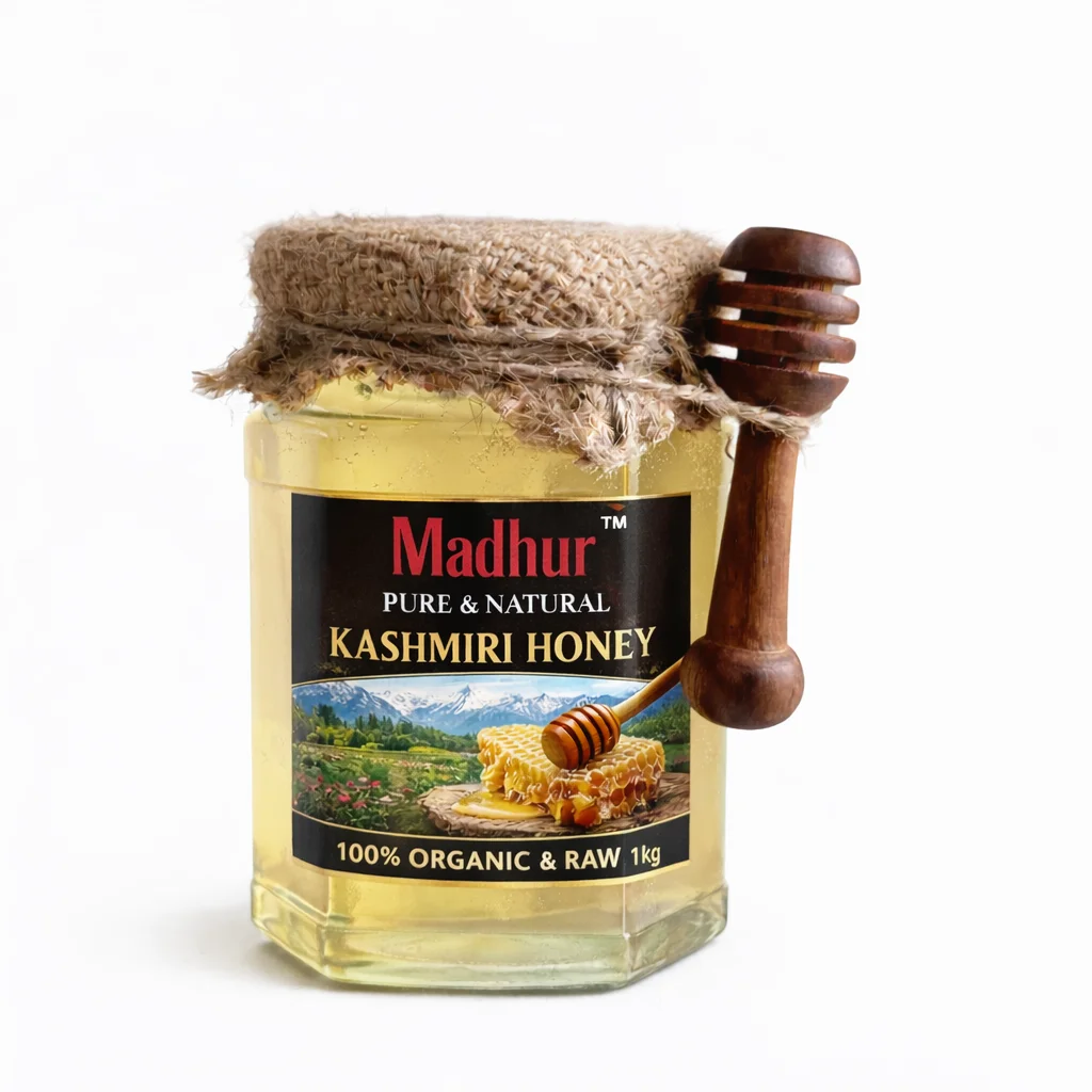 Experience the richness of nature with Madhur Pure & Natural Kashmiri Honey, sourced from the pristine valleys of Kashmir. This 100% organic and raw honey is carefully extracted to preserve its natural enzymes, nutrients, and authentic taste. Free from added sugar, chemicals, and preservatives, Madhur Kashmiri Honey delivers pure goodness in every spoon.